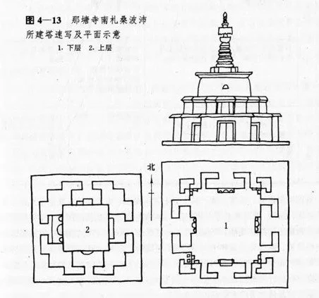 Left: Floor plan of Tashigomang’s two levels, Su Bai. 1996. Archeological Studies on Monasteries of Tibetan Buddhism. Beijing: Cultural Relics Pub. House.