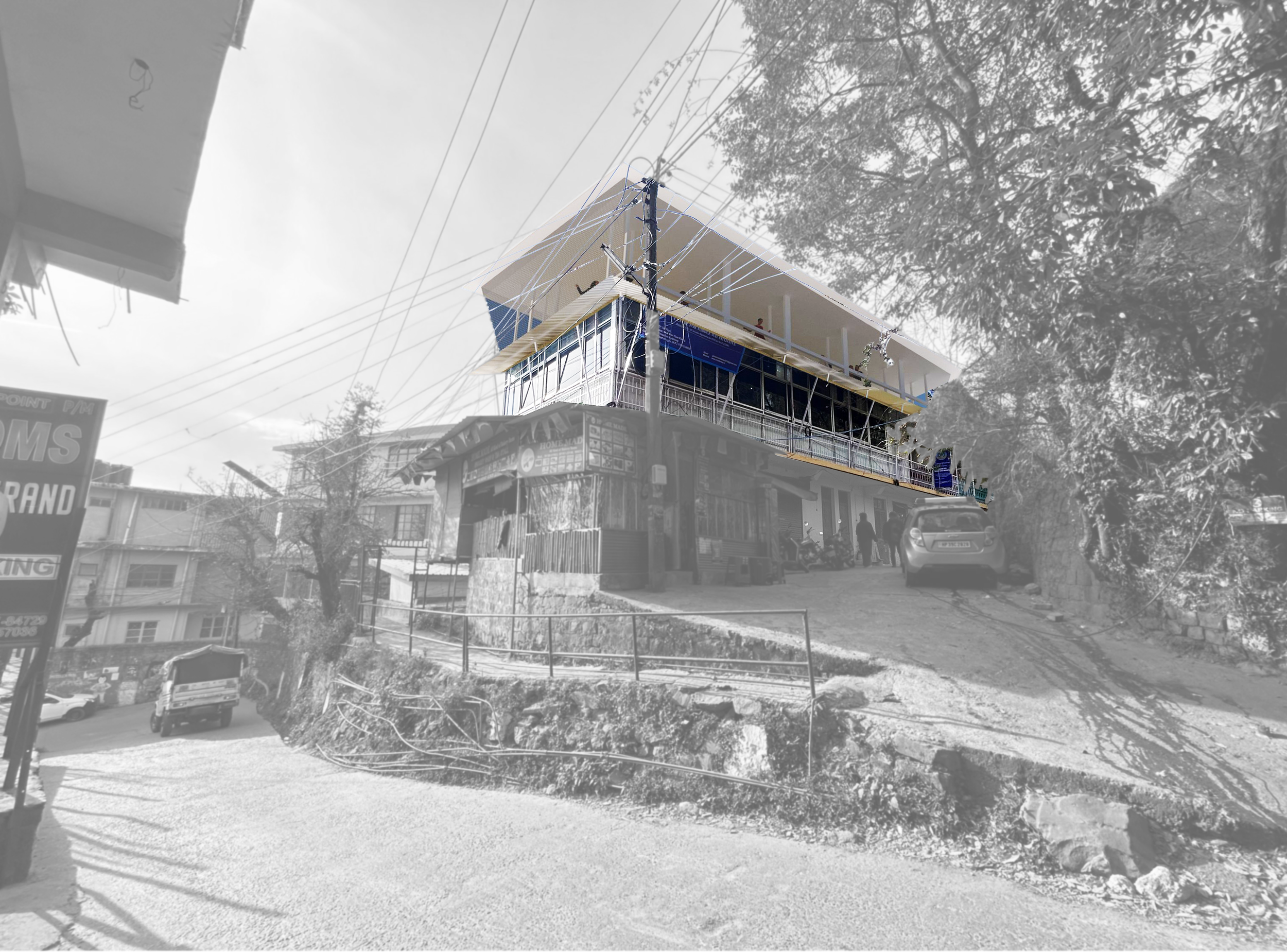 Studio Nyandak is providing pro bono architectural and structural engineering services to the Dharamsala-based non-profit Center for Middle Way Initiative. Currently, we are designing a multipurpose gathering space for the Center's headquarters in Gangkyi, Dharamsala using a lightweight steel structure with a fabric enclosure. The design is inspired by traditional Tibetan yak wool drapery.